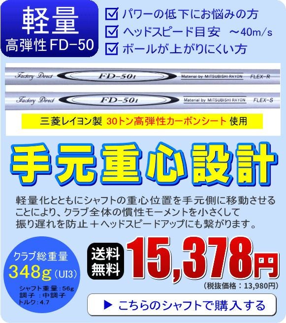 他の画像を見る 【FD-50:軽量シャフト】FLIT-BOX マレージングU-アイアン(UI3/UI4/UI5):【製造直販ゴルフ屋】※ 製造直販価格 ¥ 15,378 税込 詳細を見る お気に入りに登録する