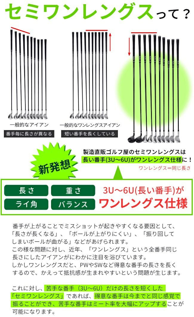 他の画像を見る 【8本セット】【FD-50:軽量シャフト】FLIT-BOX SEMIONEアイアンセット(8本組)(5I/6I/7I/8I/9I/PW/AW/SW):【製造直販ゴルフ屋】※ 製造直販価格 ¥ 66,880 税込 詳細を見る お気に入りに登録する