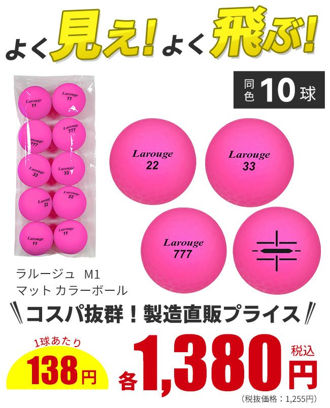 他の画像を見る ★箱なし10球パック 【10球】Larouge ラルージュ M1 ディスタンス MATTE ゴルフボールカラーボール 艶消しマット:【製造直販ゴルフ屋】※ 製造直販価格 ¥ 1,380 税込 在庫切れ 詳細を見る お気に入りに登録する