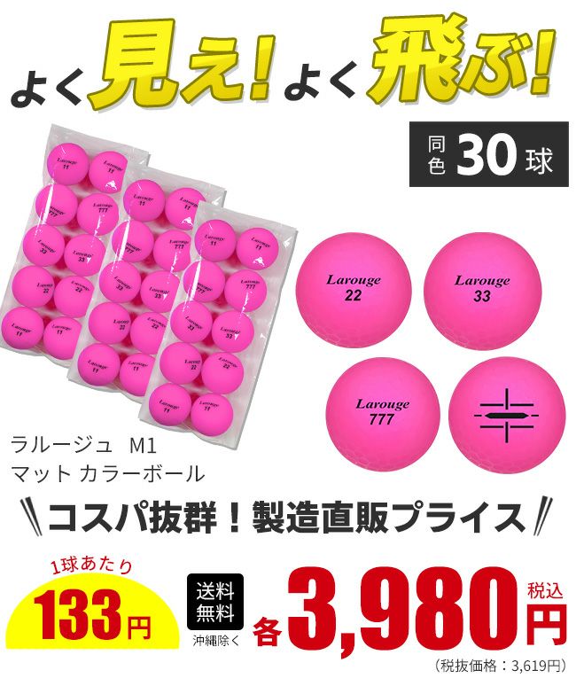 他の画像を見る ★箱なし30球パック 【30球セット】Larouge ラルージュ M1 ディスタンス MATTE ゴルフボールカラーボール 艶消しマット:【製造直販ゴルフ屋】※ 製造直販価格 ¥ 3,980 税込 在庫切れ 詳細を見る お気に入りに登録する