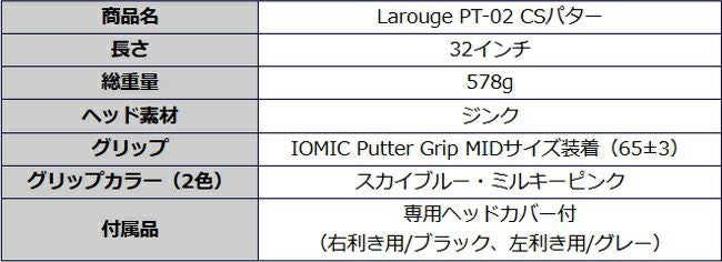他の画像を見る 【レディース】Larouge PT-02 CSパター32インチ IOMICグリップ標準装着(ピンク/スカイブルー):【製造直販ゴルフ屋】※ 製造直販価格 ¥ 10,098 税込 詳細を見る お気に入りに登録する