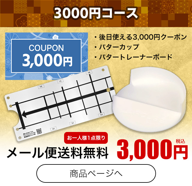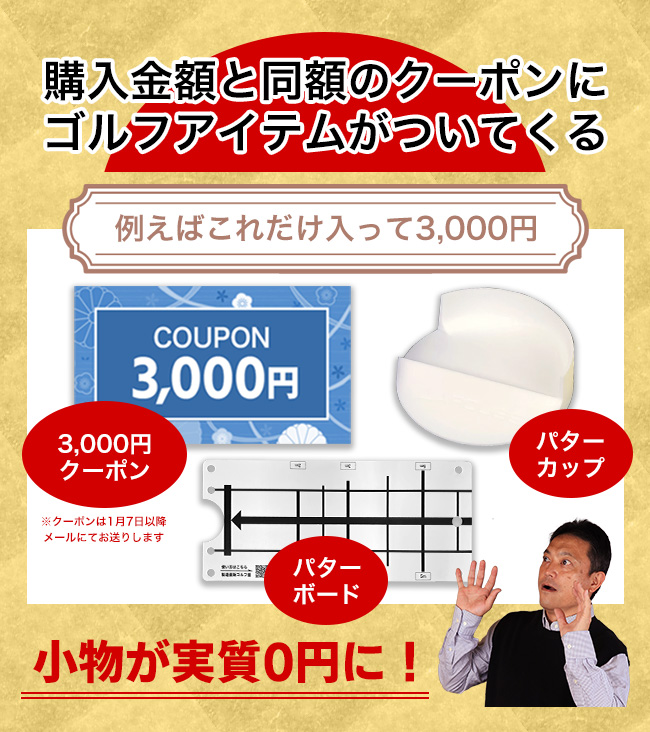 他の画像を見る ★メール便送料無料★お一人様1点限り 福袋 2026クーポン3,000円+パット練習グッズパター トレーニング:【製造直販ゴルフ屋】※ メール便可 製造直販価格 ¥ 3,000 税込 販売期間 2025/12/19 18:00 〜 2026/01/05 10:00 詳細を見る お気に入りに登録する