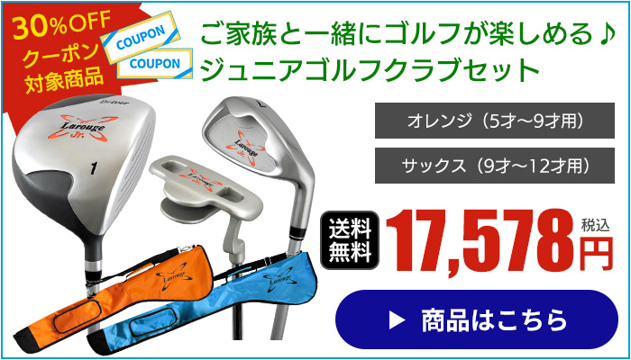 他の画像を見る Larougeジュニア用ゴルフセット【オレンジ】5-9才用(110-130cm)【サックス】9-12才用(130-150cm):【製造直販ゴルフ屋】※ 通常価格 ¥ 17,578 税込 詳細を見る お気に入りに登録する