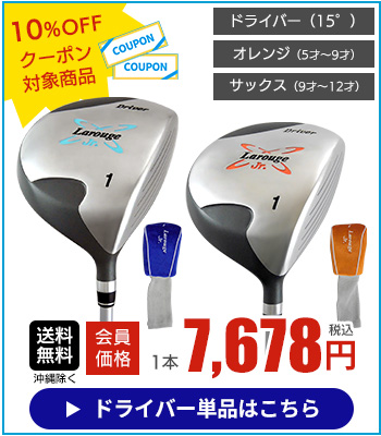 他の画像を見る Larougeジュニア用ドライバー単品【オレンジ】5-9才用(110-130cm)【サックス】9-12才用(130-150cm):【製造直販ゴルフ屋】※ 通常価格 ¥ 8,228 税込 会員価格あり 会員特典価格 ¥ 7,678 税込 詳細を見る お気に入りに登録する