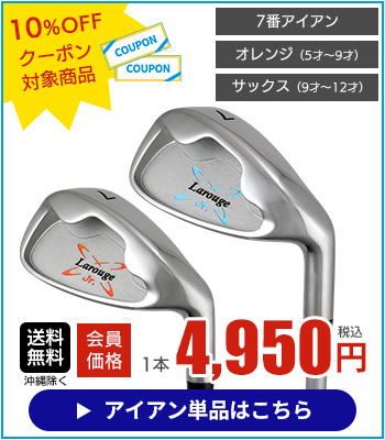 他の画像を見る Larougeジュニア用アイアン単品(7I)【オレンジ】5-9才用(110-130cm)【サックス】9-12才用(130-150cm):【製造直販ゴルフ屋】※ 通常価格 ¥ 5,478 税込 会員価格あり 会員特典価格 ¥ 4,950 税込 詳細を見る お気に入りに登録する