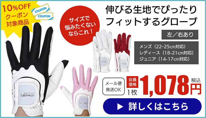 他の画像を見る Larouge ワンサイズグローブ サイズ選びに悩まないゴルフグローブ :【製造直販ゴルフ屋】※ メール便可 通常価格 ¥ 1,131 税込 会員価格あり 会員特典価格 ¥ 1,078 税込 詳細を見る お気に入りに登録する