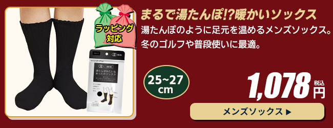 他の画像を見る ★冬のあったか防寒アイテム 湯たんぽみたいなあったかメンズソックスメンズ ブラック(サイズ:25-27cm):【製造直販ゴルフ屋】※ 普通郵便可 製造直販価格 ¥ 1,078 税込 詳細を見る お気に入りに登録する