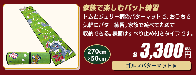他の画像を見る パット練習が楽しくなる♪ トム&ジェリー パターマット 丸眞 ゴルフ パターマット 2.7m :【製造直販ゴルフ屋】※ 製造直販価格 ¥ 3,300 税込 カートに入れる お気に入りに登録する
