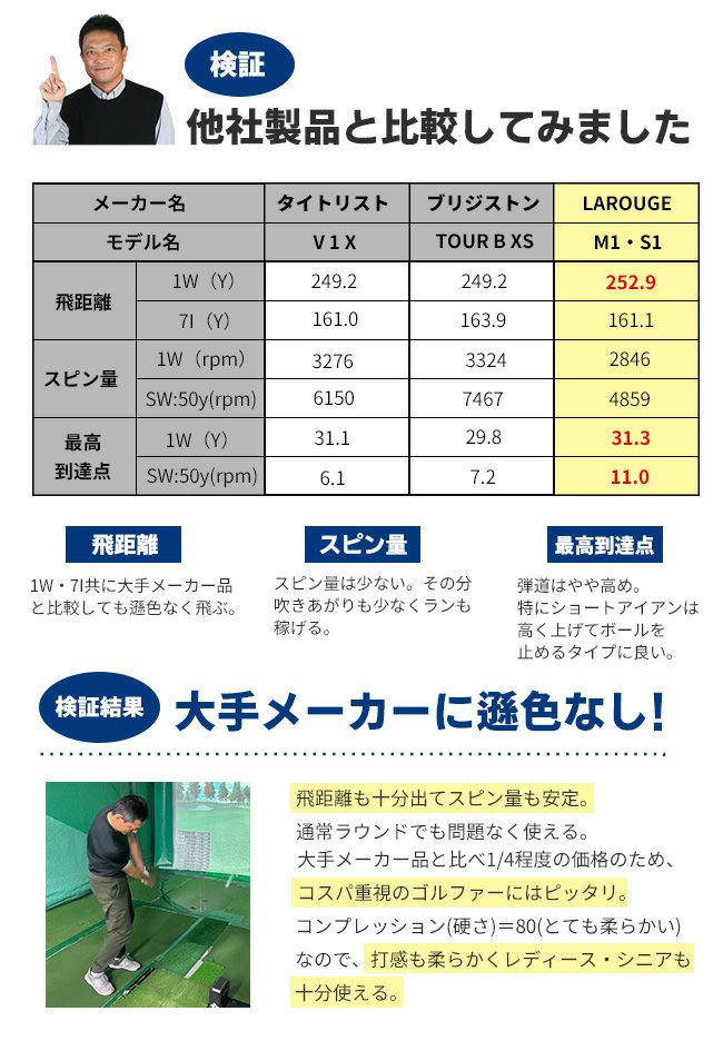 他の画像を見る ★箱入りでコンペ景品にもオススメ 【1ダース/12球入】Larouge ラルージュ S1 ディスタンスゴルフボール WHITE(ホワイト):【製造直販ゴルフ屋】※ 製造直販価格 ¥ 1,680 税込 詳細を見る お気に入りに登録する