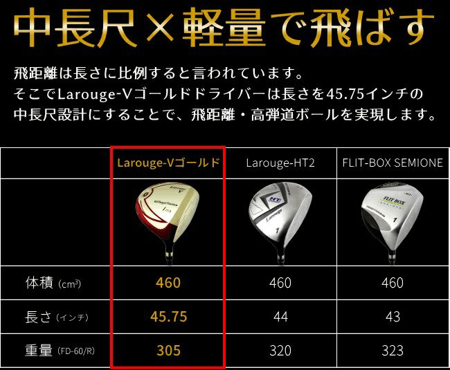 【FD-50:軽量シャフト】Larouge-Vゴールド ドライバー :【製造直販ゴルフ屋】※