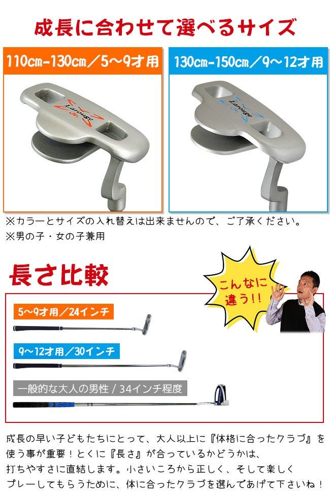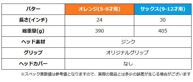 他の画像を見る Larougeジュニア用パター単品【オレンジ】5-9才用(110-130cm)【サックス】9-12才用(130-150cm):【製造直販ゴルフ屋】※ 製造直販価格 ¥ 4,950 税込 詳細を見る お気に入りに登録する