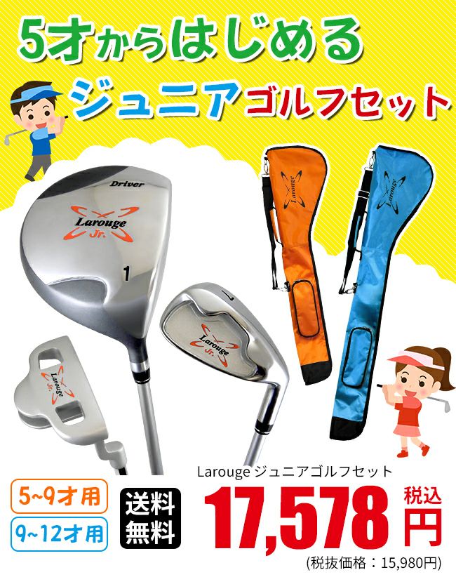 他の画像を見る Larougeジュニア用ゴルフセット【オレンジ】5-9才用(110-130cm)【サックス】9-12才用(130-150cm):【製造直販ゴルフ屋】※ 製造直販価格 ¥ 17,578 税込 詳細を見る お気に入りに登録する