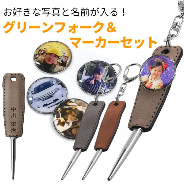 【メール便送料無料】名入れグリーンフォーク + ゴルフマーカーセット:【製造直販ゴルフ屋】※