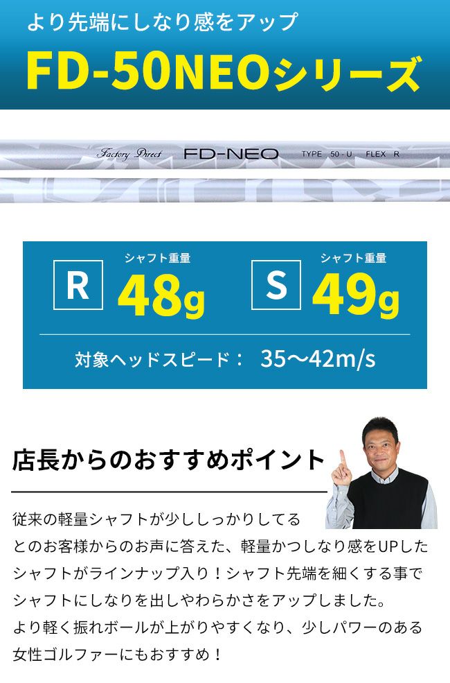 他の画像を見る 当店オリジナルシャフト ★シャフトのみ★ユーティリティ用★ しなり感UP・軽量シャフト FD-50NEO カーボンシャフト:【製造直販ゴルフ屋】※ 通常価格 ¥ 11,000 税込 詳細を見る お気に入りに登録する