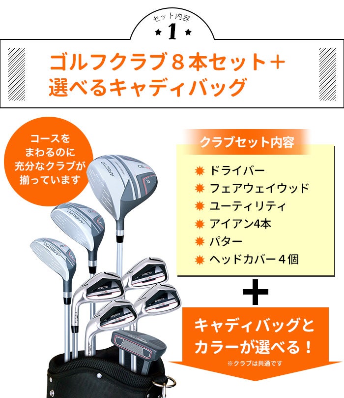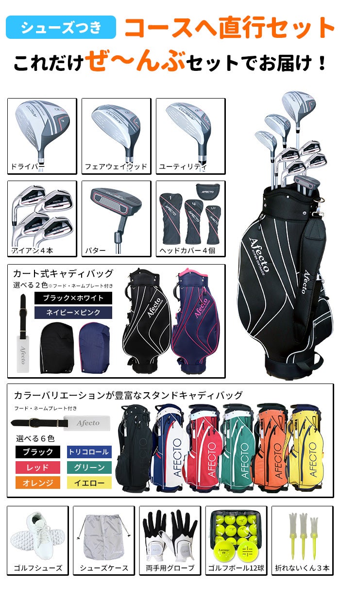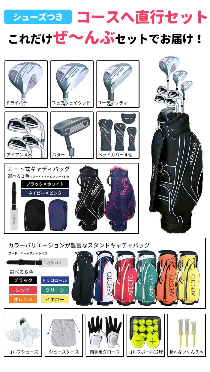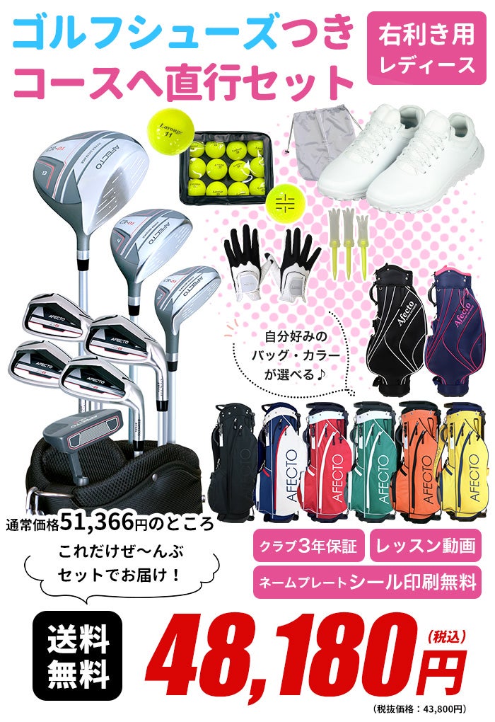 他の画像を見る ★お買い得なコース直行セット! 【右利き用】【初心者におすすめ】コースへ直行18点AFECTO CR-01 レディースセット:【製造直販ゴルフ屋】※ 通常価格 ¥ 52,998 税込 会員価格あり 会員特典価格 ¥ 48,180 税込 詳細を見る お気に入りに登録する