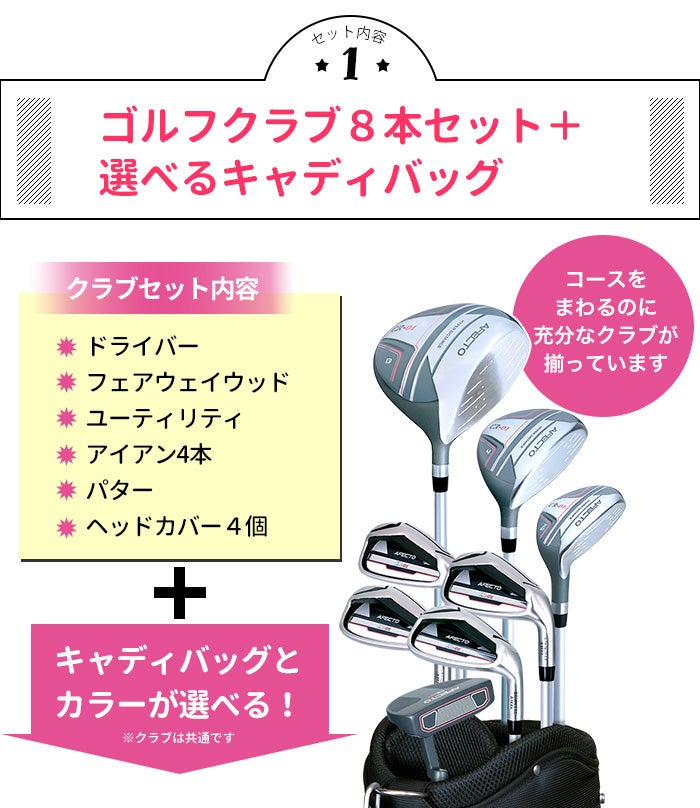 他の画像を見る 【右利き用】AFECTO CR-01レディースゴルフセットゴルフクラブ8本+選べるキャディバッグ付き:【製造直販ゴルフ屋】※ 通常価格 ¥ 43,318 税込 会員価格あり 会員特典価格 ¥ 39,380 税込 詳細を見る お気に入りに登録する