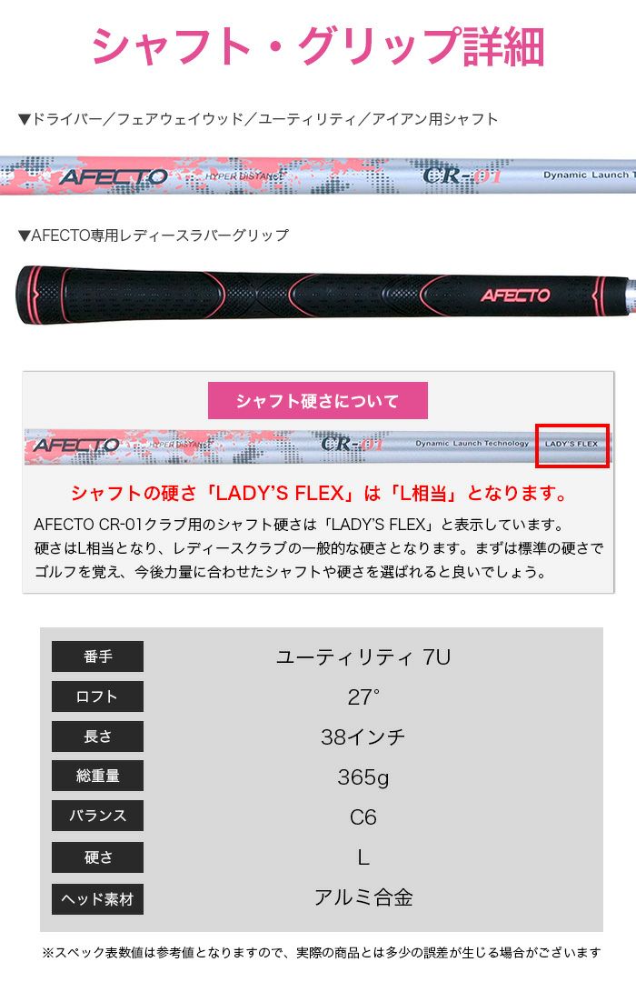 他の画像を見る 【右用】【左用】【レディース】AFECTO CR-01 レディース ユーティリティ U7 27° :【製造直販ゴルフ屋】※ 通常価格 ¥ 7,235 税込 会員価格あり 会員特典価格 ¥ 6,578 税込 詳細を見る お気に入りに登録する