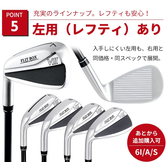 他の画像を見る NEW★新製品 【FD-60:標準シャフト】FLIT-BOX7 Airアイアン(7本組)(6I/7I/8I/9I/PW/AW/SW):【製造直販ゴルフ屋】※ 製造直販価格 ¥ 84,700 税込 販売期間 2026/03/04 20:00 〜 2026/03/31 10:00 詳細を見る お気に入りに登録する