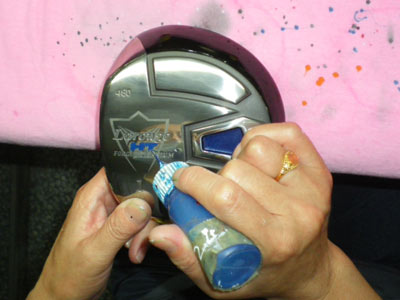 このマスキングテープを貼るのが実に難しい。トップラインなど少しずれただけでもフェースがかぶって見えたりするので、熟練さが必要となる作業です。