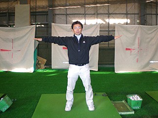 まず、まっすぐ立って両手を広げ肩と平行にします。