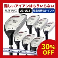 ドライバを「ドデカX高反発」Larouge-HT2オーバーサイズドライバとし、フェアウェイウッドを「デカ短FW」シリーズで5W、7W、9W、11Wまで揃えた。これでロングアイアンは不要となった。この先どうするか?ミドルアイアンもFWに置き換えるのも選択肢だが、流石にショートアイアンまでFWというわけには行かない。大きめヘッドの「デカ短FW」をこれ以上増やすとクラブケースに納まり切らないという事情も。どっかからはユーティリティーに替えざるを得ない。 「FLIT-BOX6」ユーティリティーU15とU13を購入してみた。私の腕力ではU15は8I〜9I相当位の飛距離である。意外な発見は、短いアプローチに使ってもなかなか気持ちよく決まる。ややトップ気味に入っても結構ふわっと上がってあまりランが出ないので距離感が掴みやすい。ベアグランドでダフるとヘッドにマスがないので悲惨なチョロになってしまうことだけが要注意である。 「FLIT-BOX6」ユーティリティーもなかなか使えそうで、これでサンド以外のアイアンが無くても楽しくゴルフが出来そうな目処が立った。このユーティリティーも、芯に当たったときの感触が極上とは言えないが、多少芯を外しても、スイートスポットが広くあまり曲がらない点は「ドデカX高反発」や「デカ短FW」と共通している。これはフェースの設計が、横にも縦にもあまり曲率を持たせずかなりフラットなフェースとなっていることが関係あるんであろうか? 11WとU13では飛距離が開きすぎるのでU11も買ってみた。それでもまだFW11とU11では飛距離の差が大きい。行きつけのゴルフ場のとあるショートホールでFW11では飛びすぎ、U11ではショート気味。どうもU9も必要なようである。 -