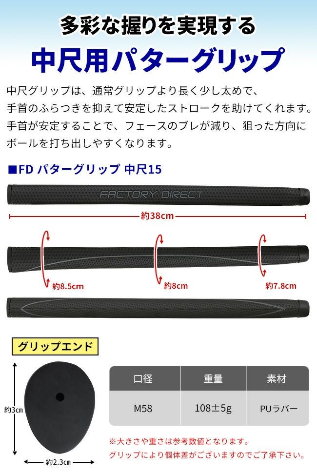 他の画像を見る ★グリップのみ★製造直販ゴルフ屋オリジナル FD PU 中尺パターグリップ15インチ(約38cm):【製造直販ゴルフ屋】※ 製造直販価格 ¥ 2,750 税込 カートに入れる お気に入りに登録する