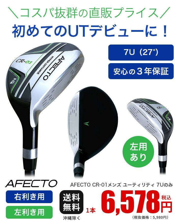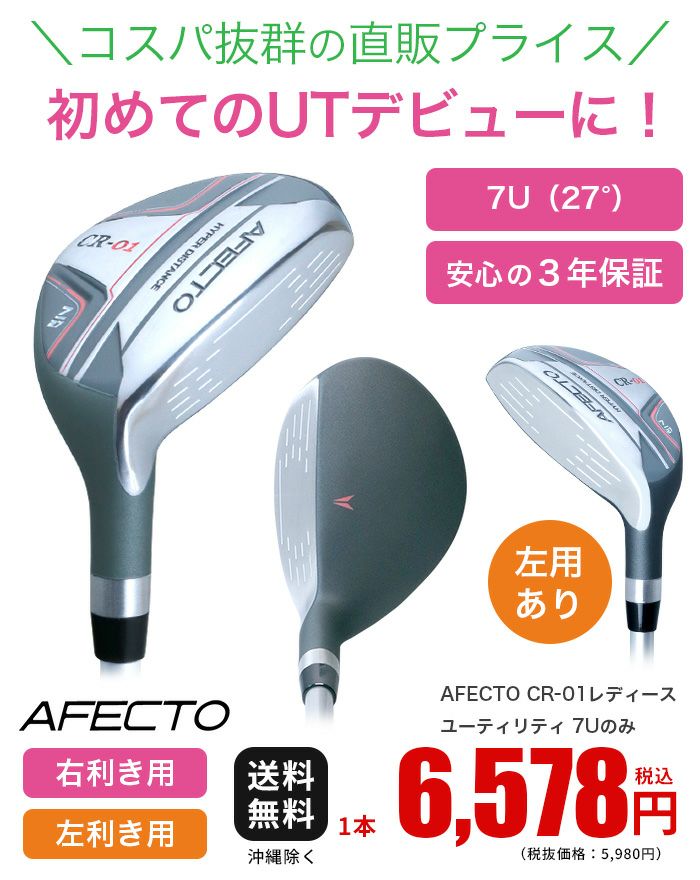 他の画像を見る 【右用】【左用】【レディース】AFECTO CR-01 レディース ユーティリティ U7 27° :【製造直販ゴルフ屋】※ 製造直販価格 ¥ 6,578 税込 詳細を見る お気に入りに登録する