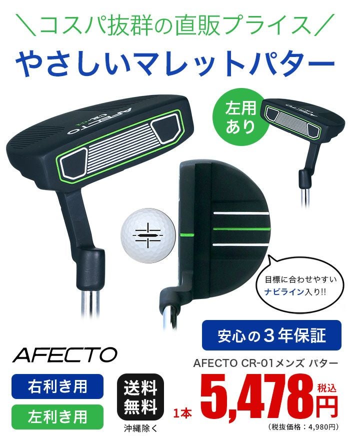 他の画像を見る 【右用】【左用】AFECTO CR-01 メンズ パター マレット 33.75インチ:【製造直販ゴルフ屋】※ 製造直販価格 ¥ 5,478 税込 在庫切れ 詳細を見る お気に入りに登録する