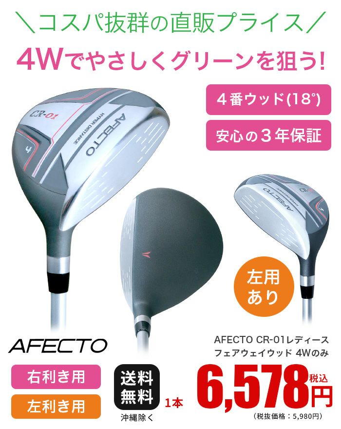 他の画像を見る 【右用】【左用】【レディース】AFECTO CR-01 レディース フェアウェイウッド 4Wのみ 18°:【製造直販ゴルフ屋】※ 製造直販価格 ¥ 6,578 税込 詳細を見る お気に入りに登録する